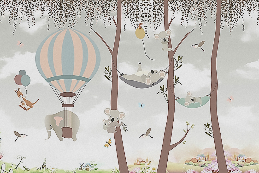 Los animales del bosque despiertan curiosidad sin saturar, las hojas generan equilibrio y la paleta calma aporta armonía a todo el ambiente.