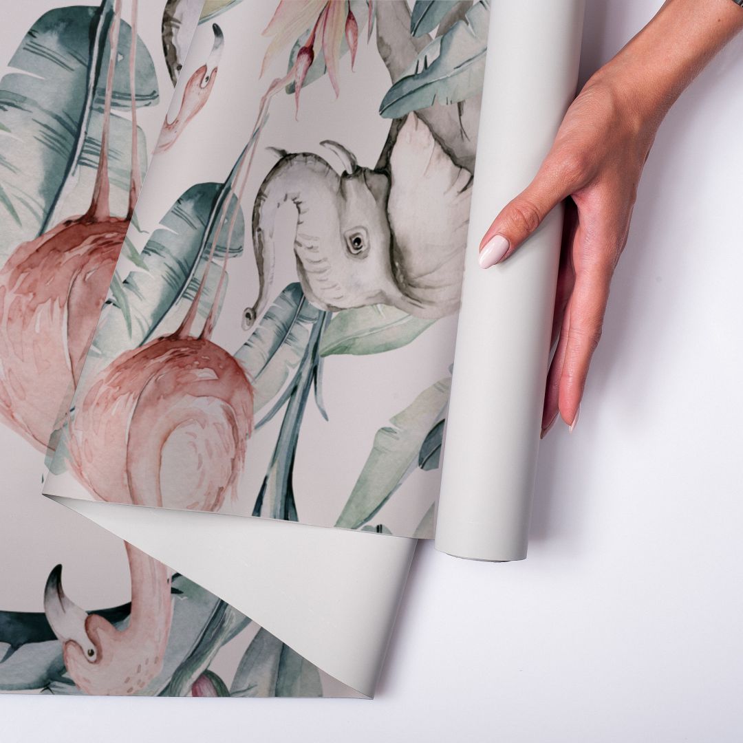 Hecho con vinilo autoadhesivo premium, el vinilo Elefantes y Flamencos convierte la pared en un cuento vivo donde tu hijo puede sentirse protagonista.