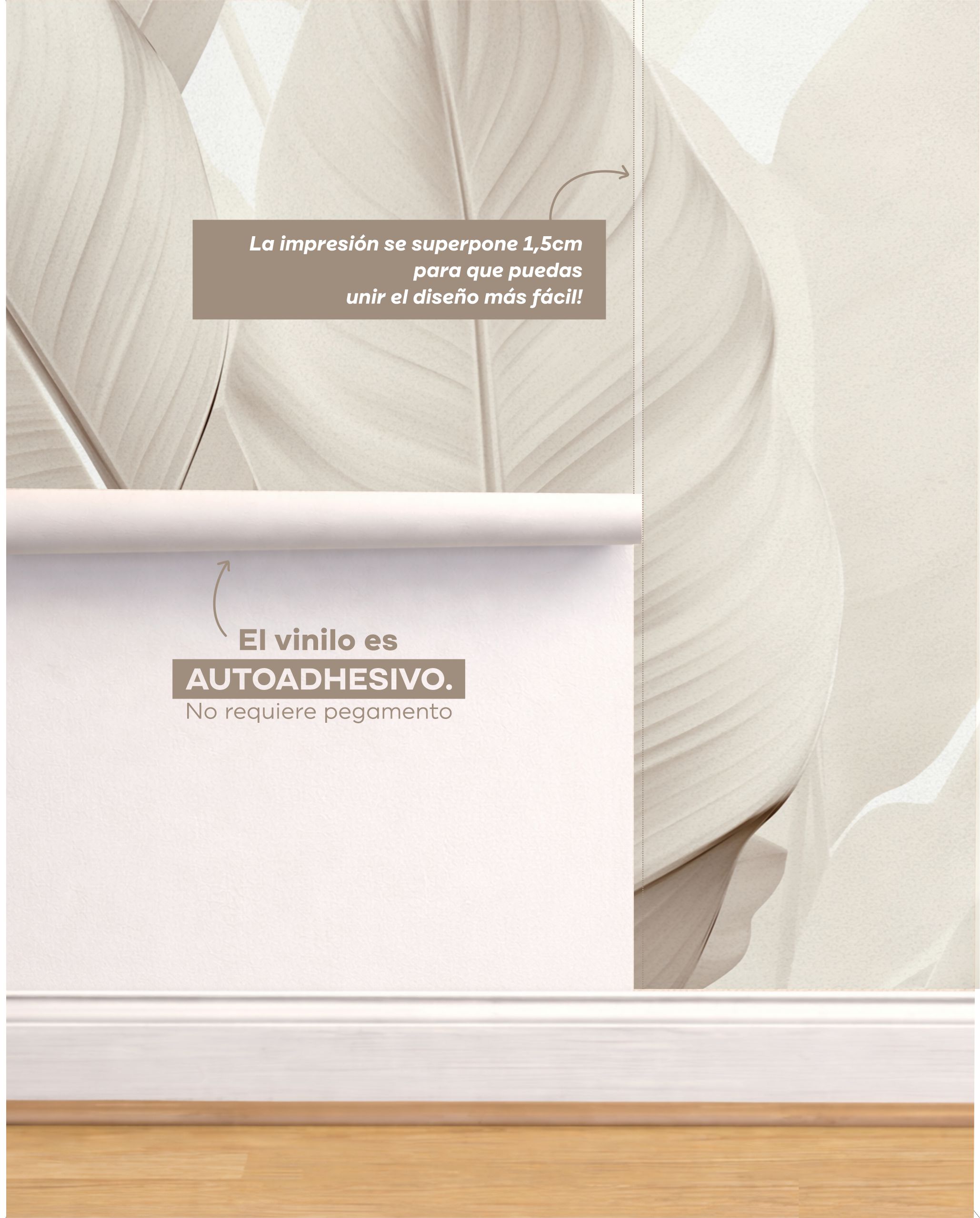 El mural Foliage Beige trae a tu pared la suavidad del bosque, la serenidad de las hojas y esa belleza orgánica que transforma cualquier ambiente en un espacio vivo y acogedor.