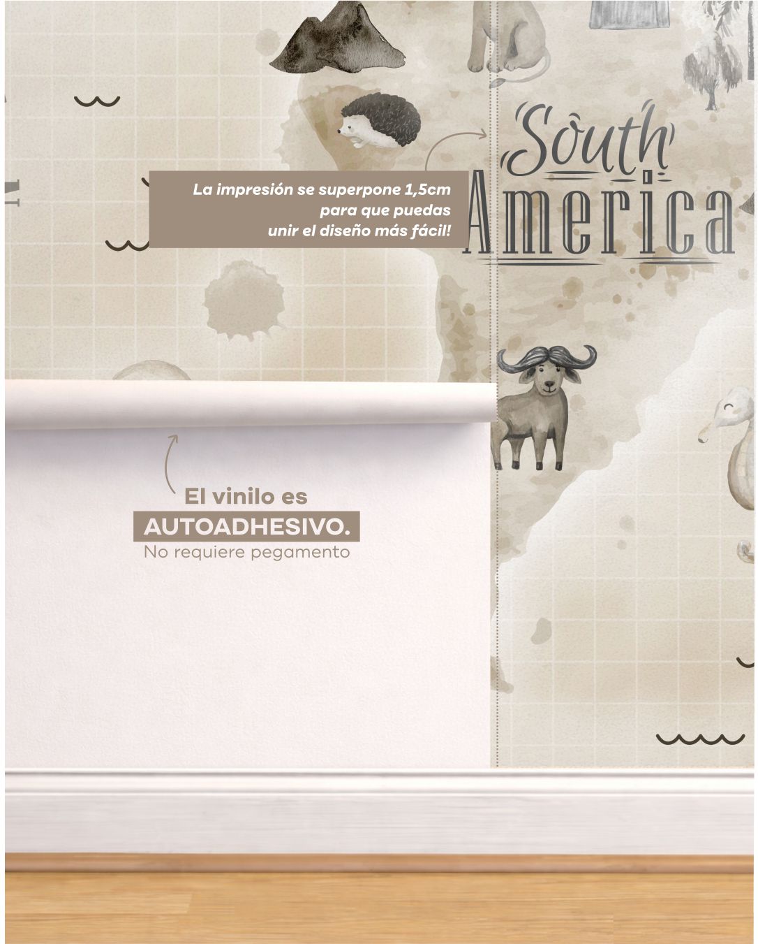 Hecho con vinilo autoadhesivo premium, el vinilo Mapa Beige Infantil no es solo decoración: es una ventana para que tus hijos descubran lo grande, diverso y emocionante que es el planeta.