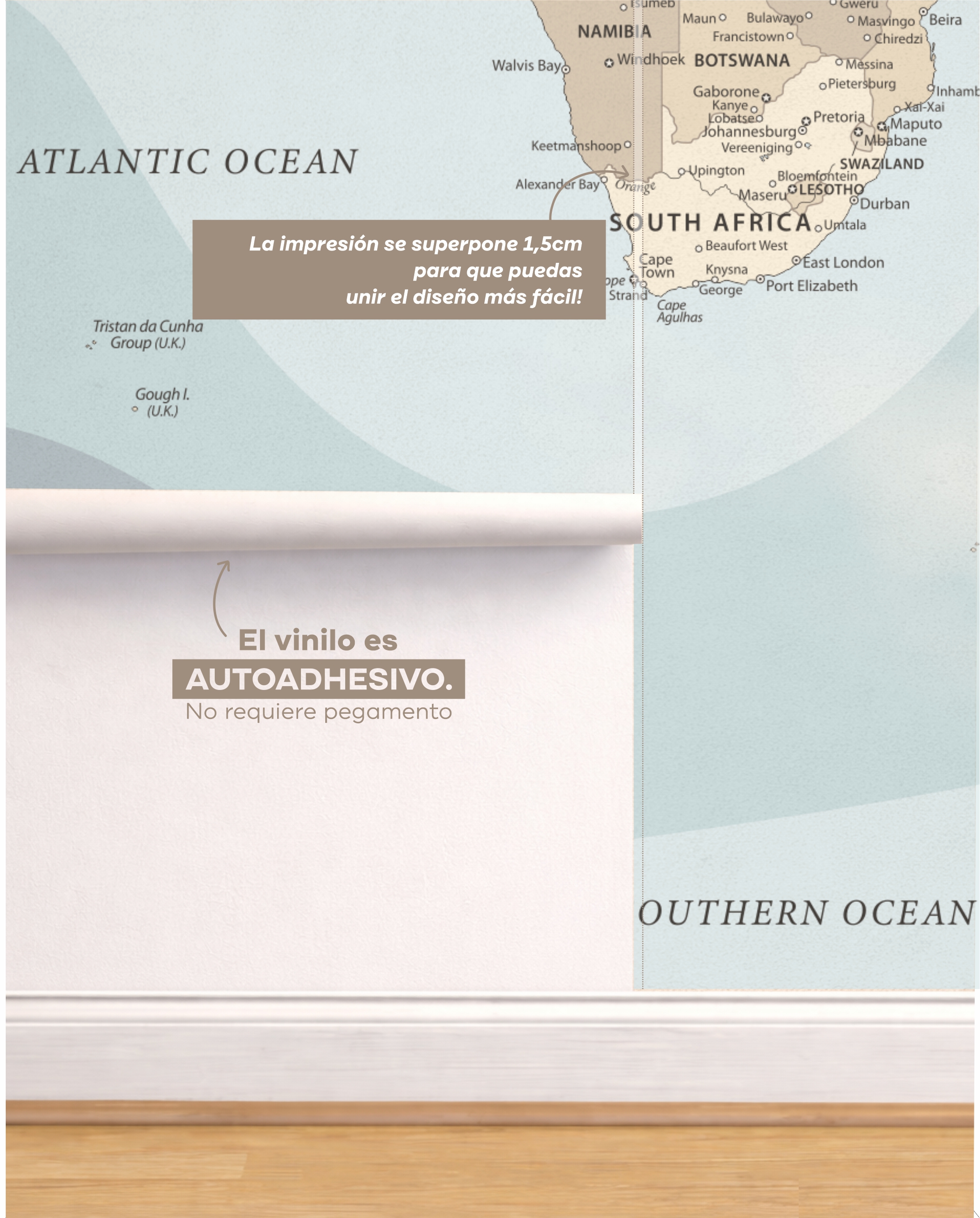 Hecho con vinilo autoadhesivo premium, el vinilo Mapa Político Infantil no es solo decoración: es una ventana para que tus hijos descubran lo grande, diverso y emocionante que es el planeta.