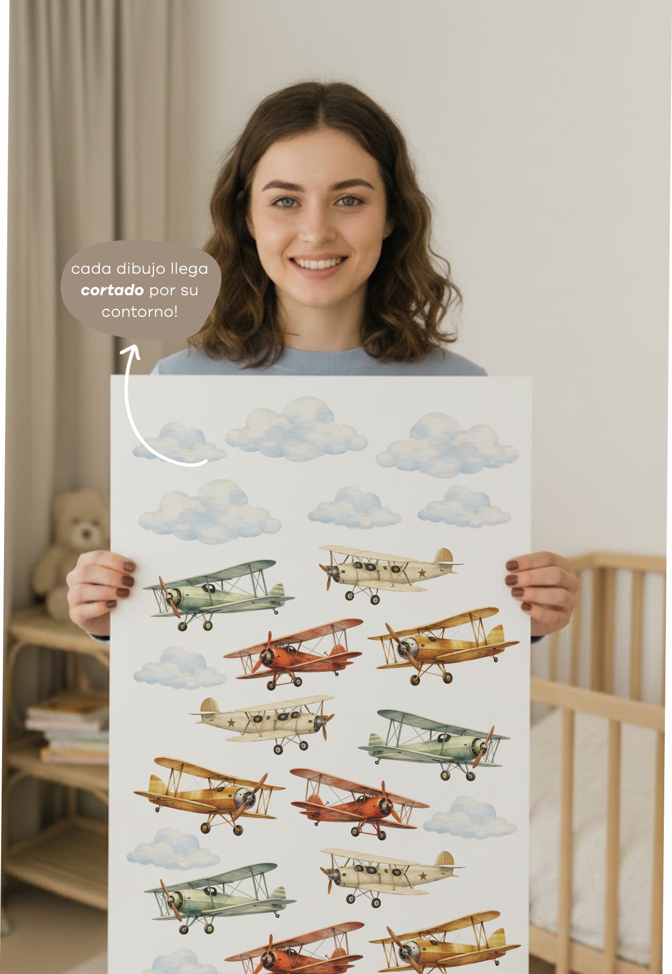 Podés distribuirlas libremente, jugar con las alturas, separar los aviones, combinarlos entre ambientes o armar una composición amplia en una sola pared.