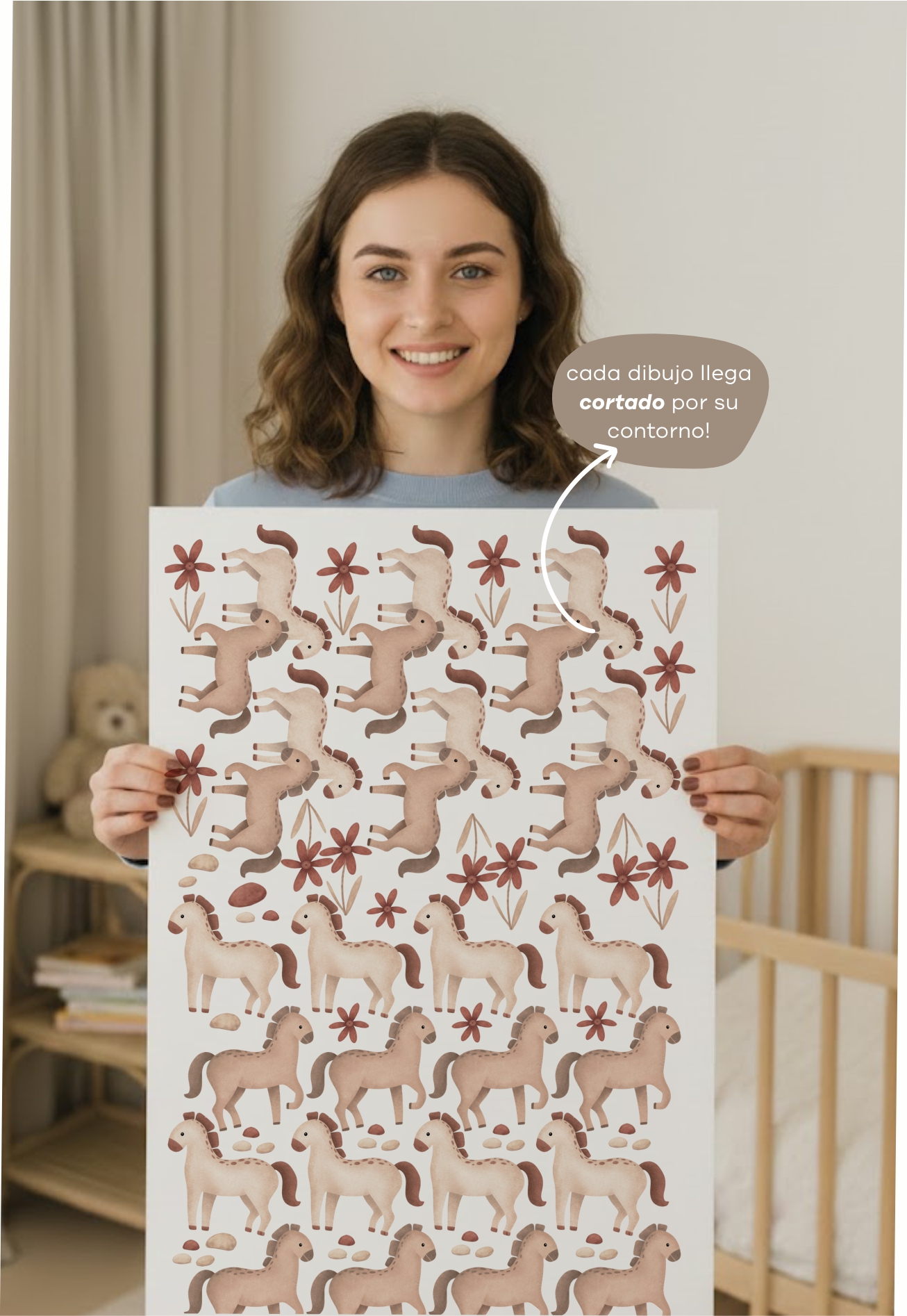 Podés distribuirlas libremente, jugar con las alturas, separar los animales, combinarlos entre ambientes o armar una composición amplia en una sola pared.