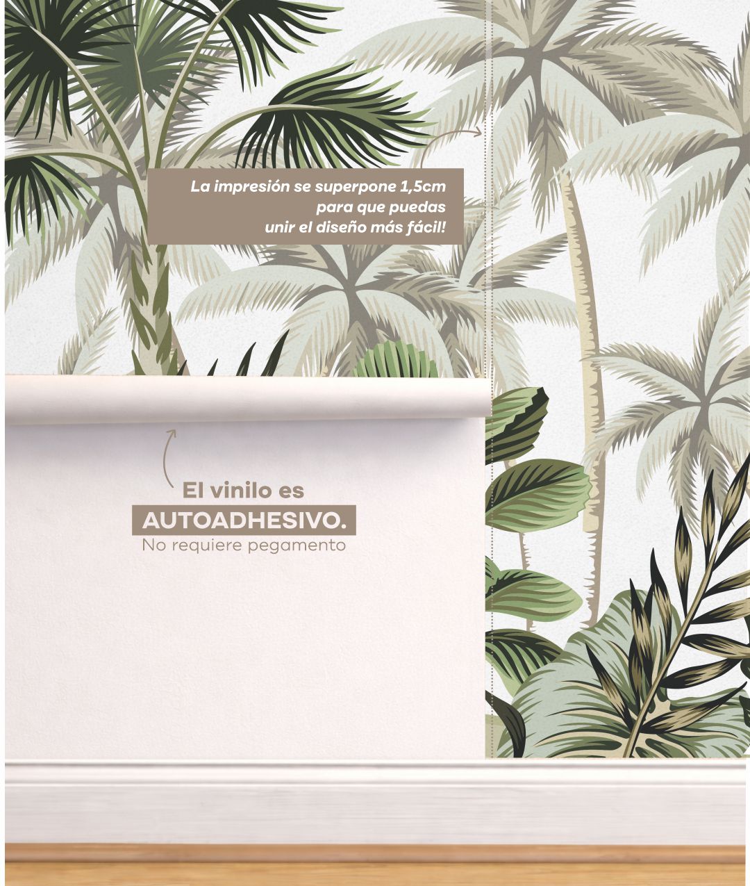 El mural Selva Tropical trae a tu pared la belleza orgánica que transforma cualquier ambiente en un espacio vivo y acogedor. Sus palmeras, y tonos verdes se funden entre sí, creando una sensación de movimiento y profundidad que invita a respirar más lento.