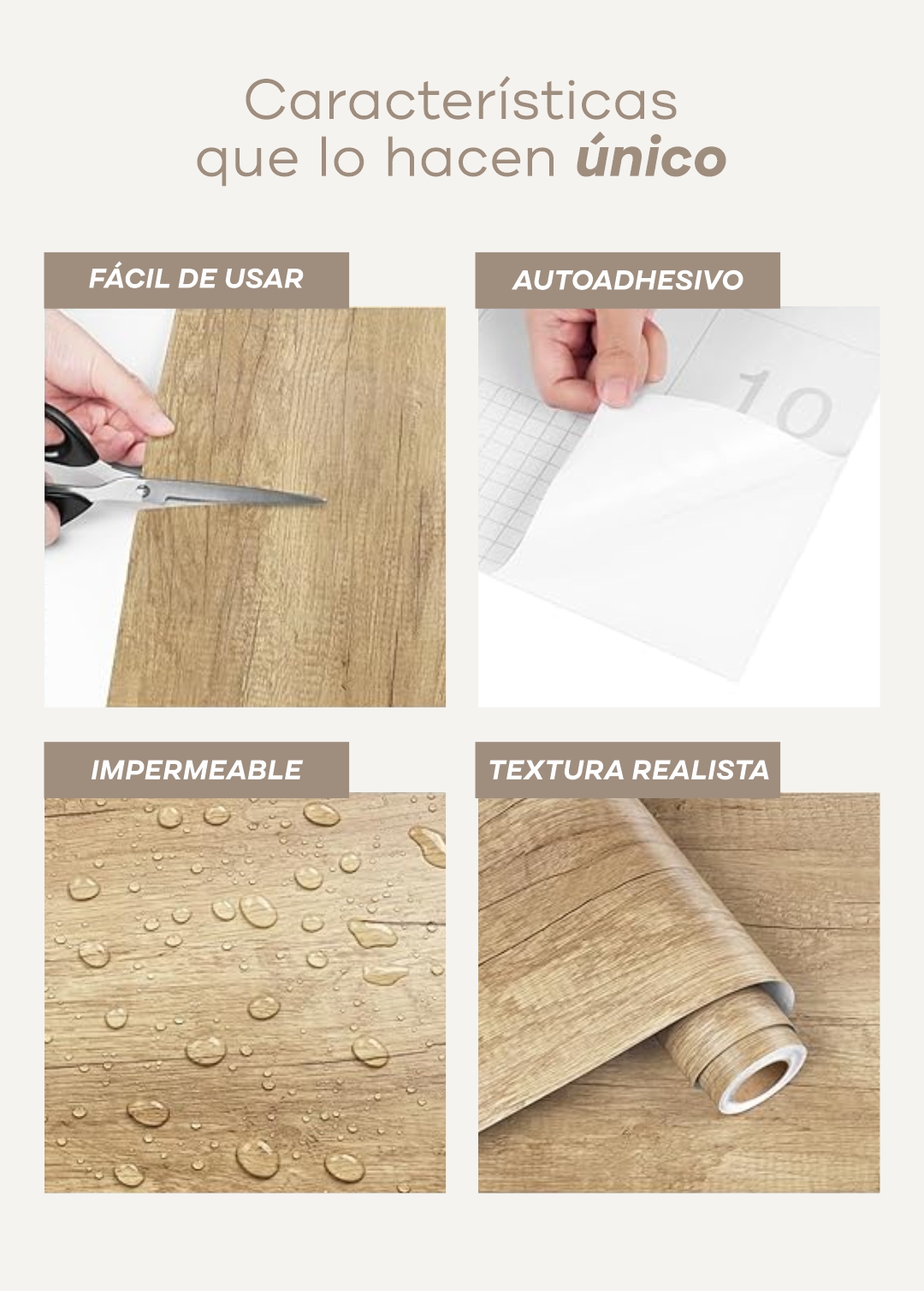Nuestros vinilos símil madera están pensados para quienes quieren renovar su hogar u oficina sin lijar, sin pintar y sin contratar expertos.